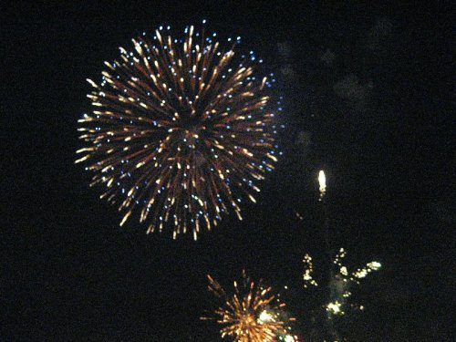 元宵节的晚上,我和姐姐、爸爸、妈妈、爷爷、奶奶在家门口看烟花,邻居也都出来了,人们个个兴高采烈地,整个村庄一派节日的气息。