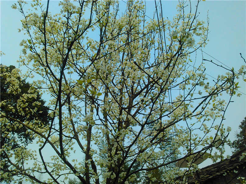 家中的那棵梨树正开的灿烂,上面开满了白色的花朵,长出了嫩嫩的枝芽,蜜蜂围绕采蜜,嗡嗡叫个不停。