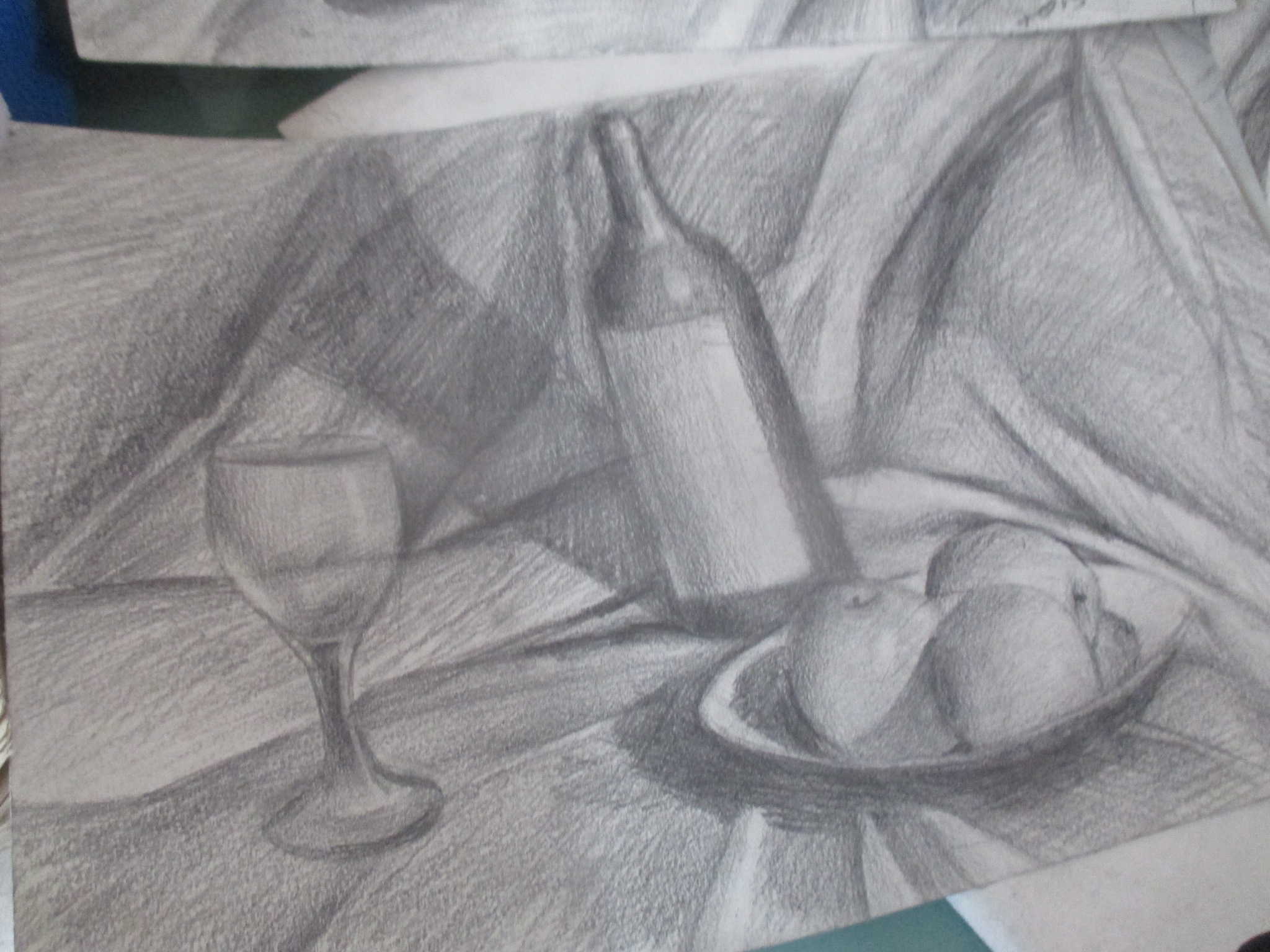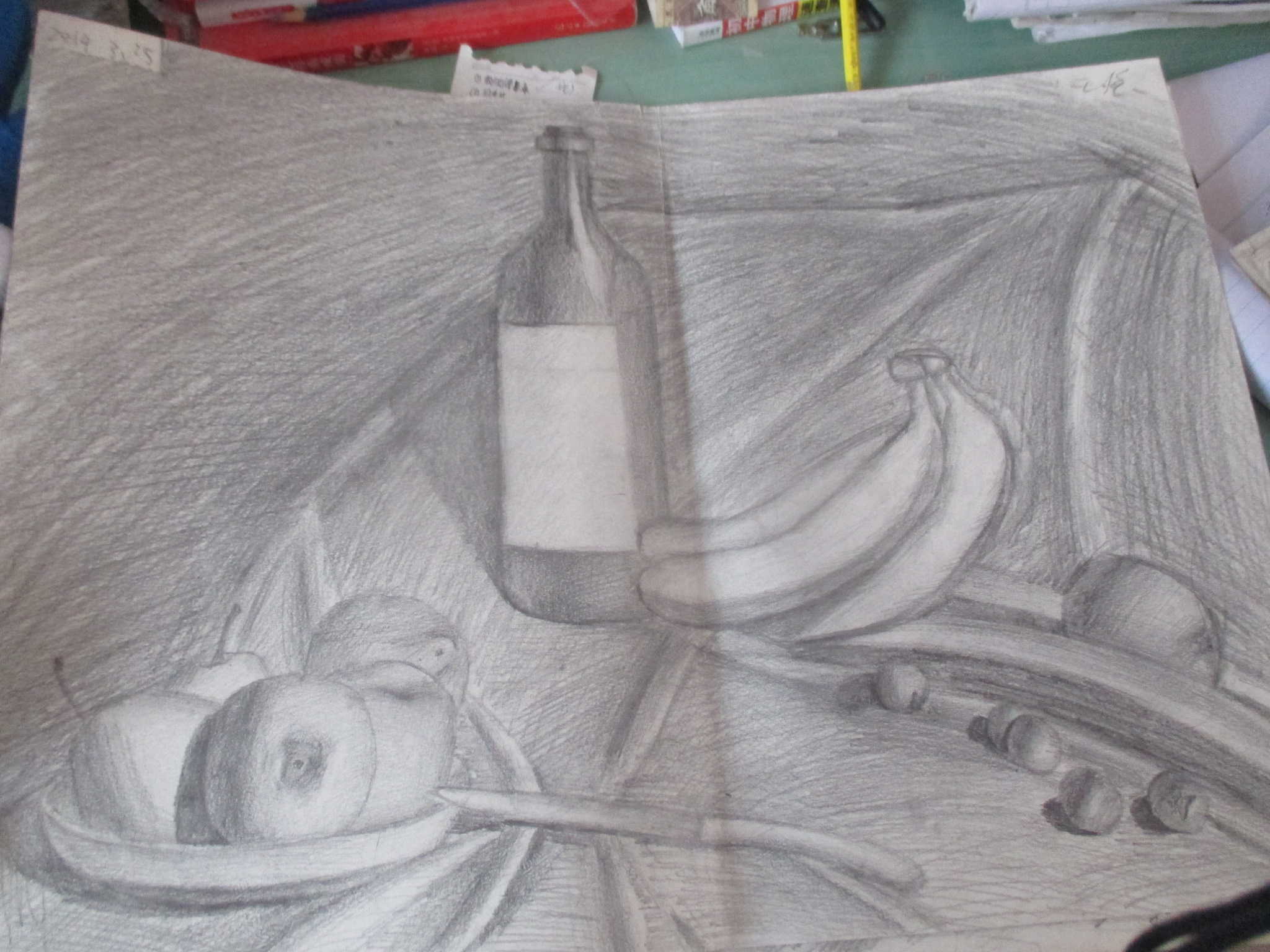 有一回,老师教我们下个礼拜带“hb”等七种型号的绘画铅笔来,我感到奇怪,画画不是带水彩笔吗?带这么多的铅笔有啥用处?不过我还是按照老师的要求做了,他说:“今天我们结束儿童画,来学习素描”?我好像也说过,使用线条来表现物体,我本来对此不太抱有信心,但只要我用心学习,照样会做的很好。老师让我们先从简体画练起,先画鸡蛋,瓶子,碗等开始,就这样我渐渐喜欢上了素描。