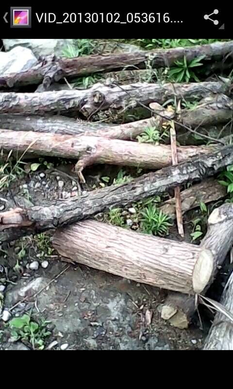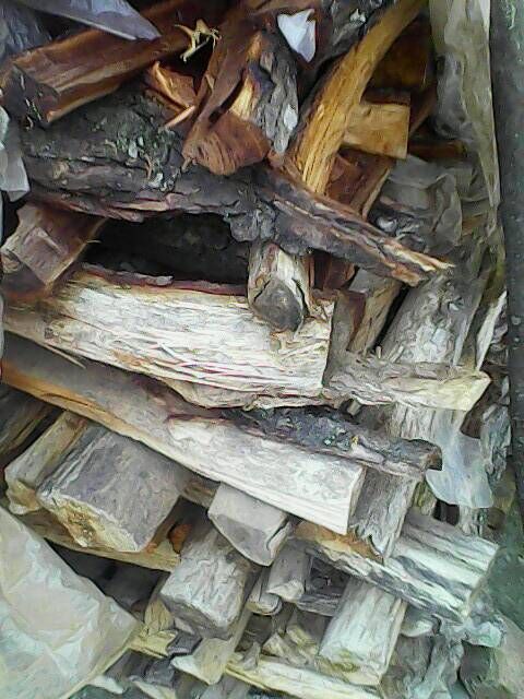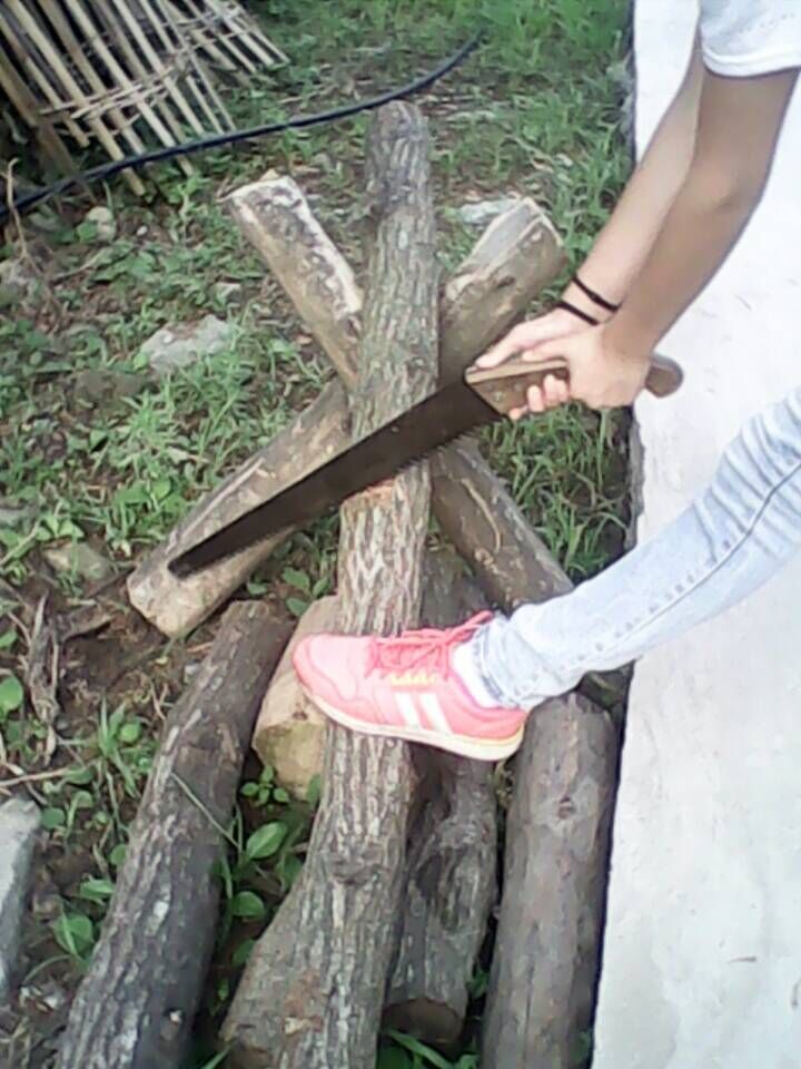 瞧,这是几根晒好了的树木,为了把它们变成烧火的好柴,就少不了这两部曲,当然,这时就该我亲自动手了。