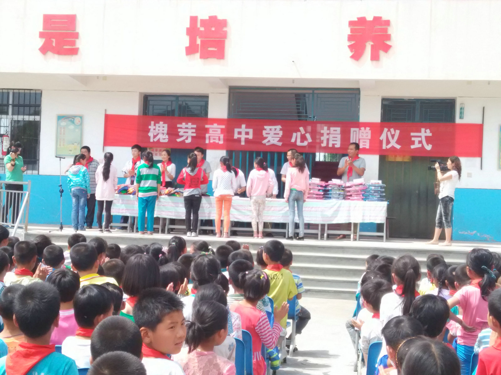 5月29日下午,槐芽中学团委、学生会及1132晨露爱心团体的师生代表在槐芽镇教委专干张晓辉同志的陪同下,赴我们槐芽镇西柿林小学进行捐助活动。