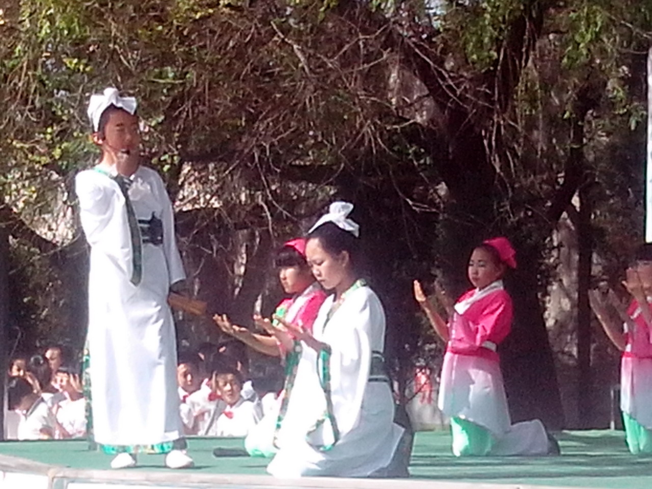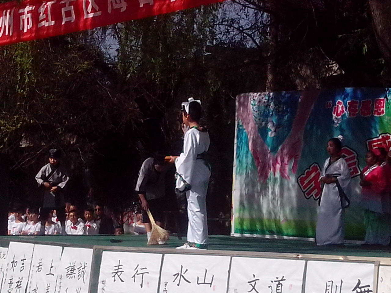 我们班的每一个同学。都在用心的表演。因为这个表演,不仅是要让看者知道做人要从孝道做起,还是要让表演者知道做人要从孝道做起。