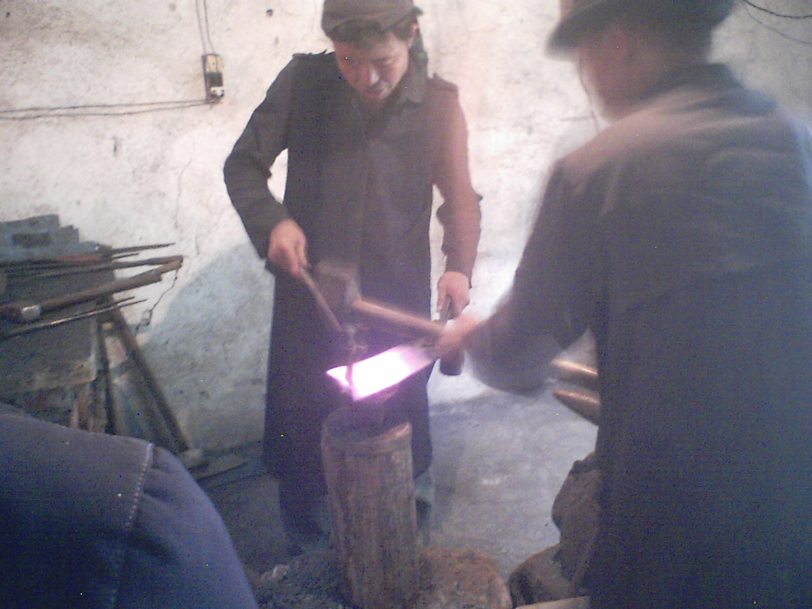 在赶集的那天,整个乡的人都会来到固定的地方来把用旧的农具进行锤炼,然后在用。
