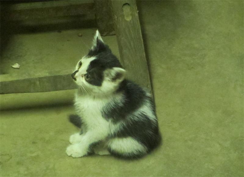 我家有一只小猫,它的毛是黑白相间的,白的显得越白,而黑的显得越黑,两个点灯泡似的眼睛盯着我,喵喵的叫着,露出了两三颗嫩白的小牙齿,一条全黑的大尾巴放在地上,路过的人说了一声:"好猫。"小猫是在有些古怪,我高兴的时候能比谁都温柔可亲,在你写作业的时候跳上桌来,在稿纸印几朵小梅花,它还会丰富多腔的叫唤,长短不齐,粗细各异,这可都凭它高兴,它也一声不出。