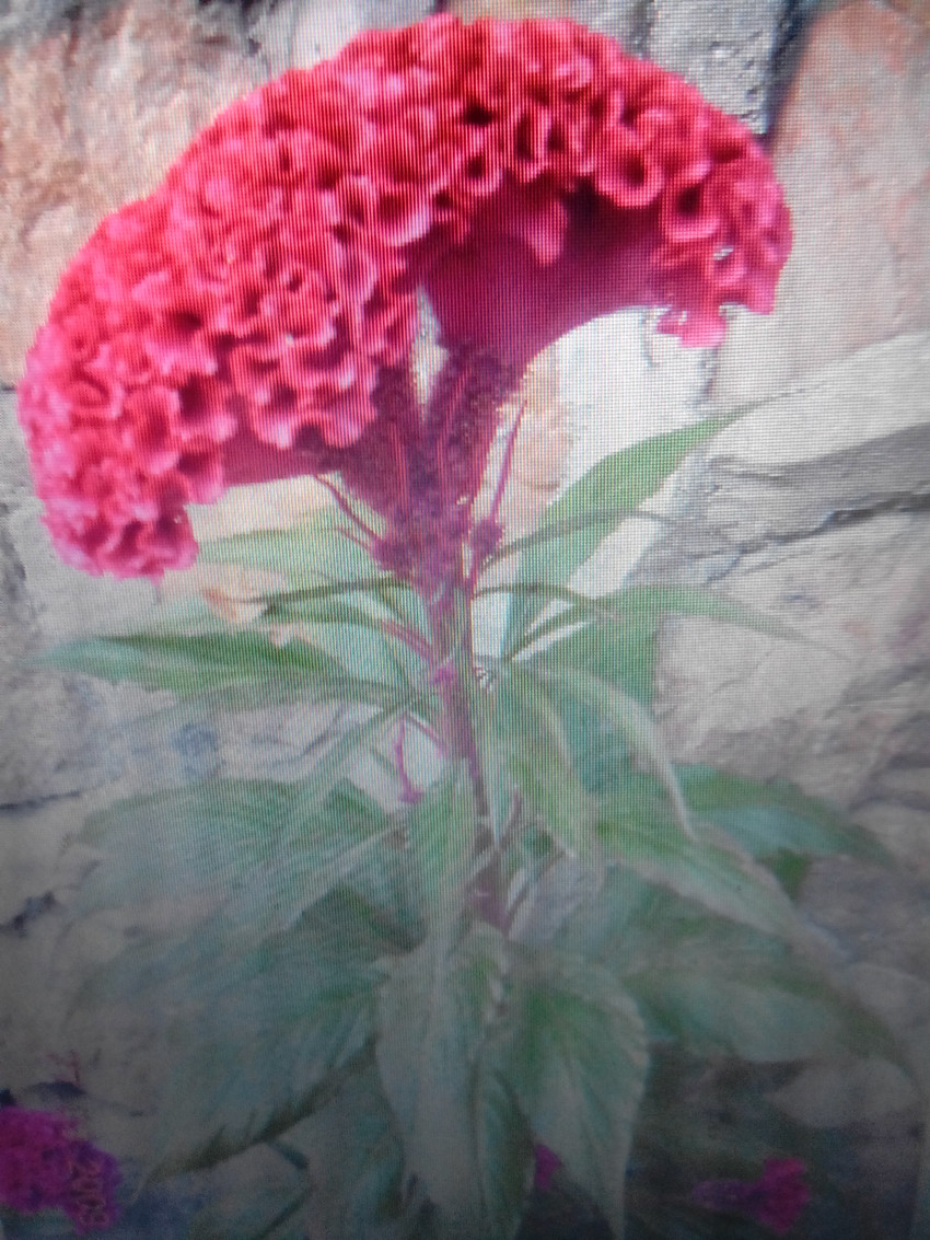 在我姑姑家里种着许多鸡冠花。因为鸡冠花的花形很像大公鸡头上的鸡冠,所以才叫这样的美名。鸡冠花的茎有两种:分叉的茎是扁的,不分叉的茎是圆的,但颜色都是粉红色的。