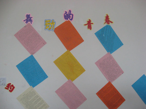 在教学楼的前后两面有很多花草树木。在大路的两面是一棵棵如同一张张绿色大全伞的垂榆。在垂榆的外面刚是两排丁香。到了6月初的时候,丁香花盛开这时在路的两侧便有 了两堵花墙。在教学楼的前后则是各种颜色的花。具体的名字我是不知道的。只有教学楼后面的刺玫是我最熟悉的了。