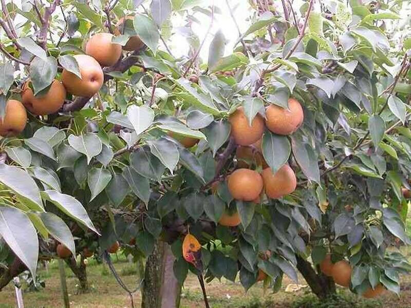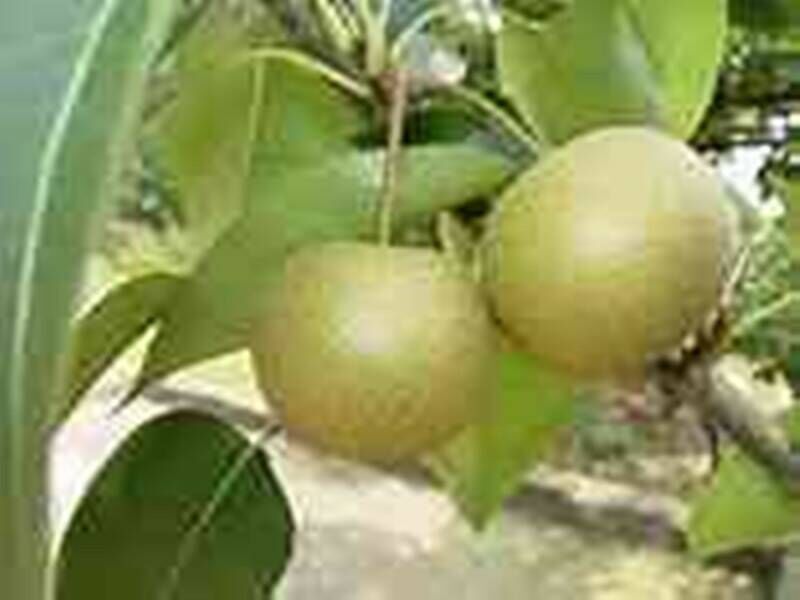 梨子成熟大约在农历六月底,成熟了的梨子个头的,果皮青里透着黄,很光滑,它的皮很薄,果肉又白又嫩,可它的籽很黑,看了就叫人有些嘴馋,大热天随手在树上摘下一个,咬上一口,清甜的梨汁满口都是,给人带来凉意。