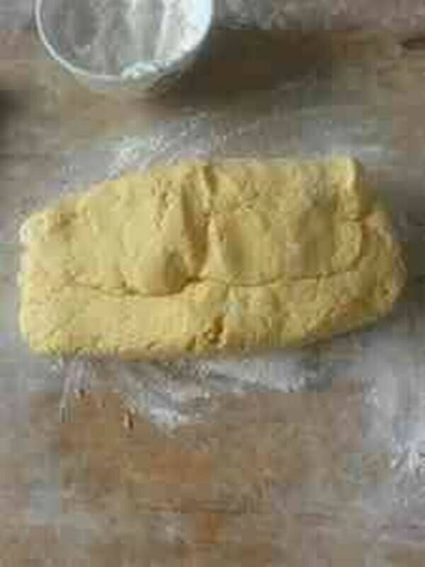 再取一团南瓜和面用手心团匀压成饼,面要少弄点,不然南瓜饼弄出来就不好吃了,要一个一个慢慢的做,不能着急还要用心去做。