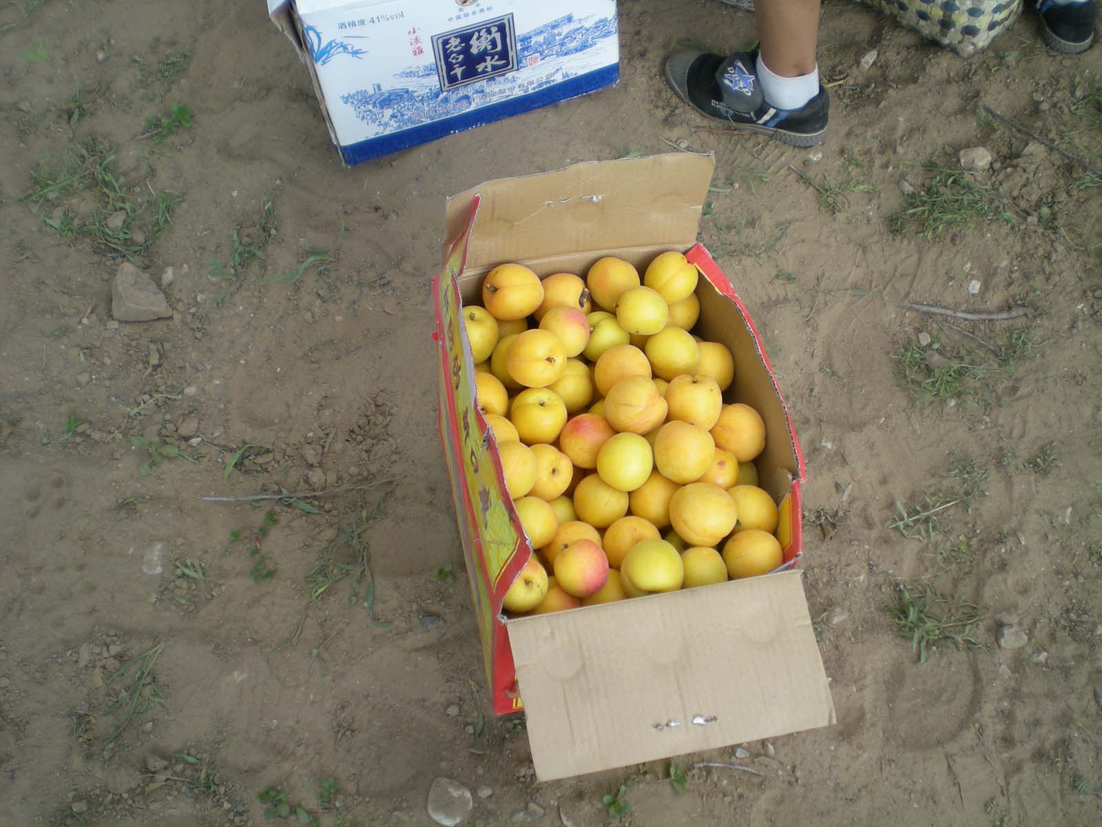 由于人多,一上午的时间就把杏园摘得差不多了,装了箱子卖给收杏的人。一年的收成装进了妈妈的口袋里,看着满园碧绿的杏林,我们心里特别高兴。