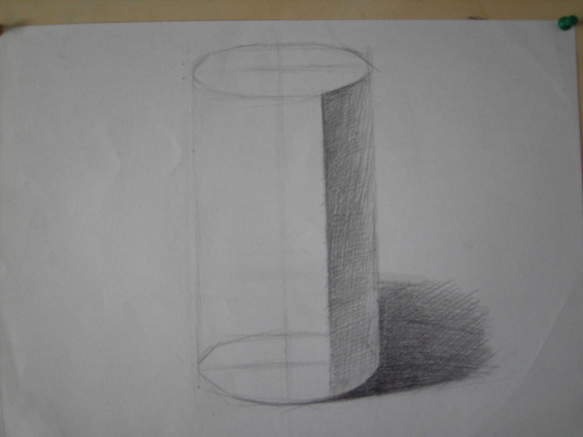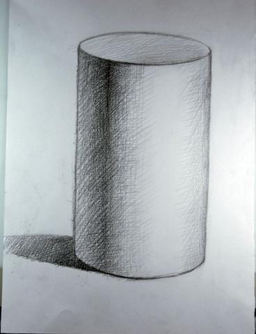终于那个圆柱的构图在我无数次的"整容"后终于过得去眼了。我心里暗暗自喜:看来只有心静才能画好素描。可高兴才不久,我又被一只"纸老虎"——明暗部分挡住了去路。这时绘画室里就我一个人,我可算是叫天天不应,叫地地不灵。
