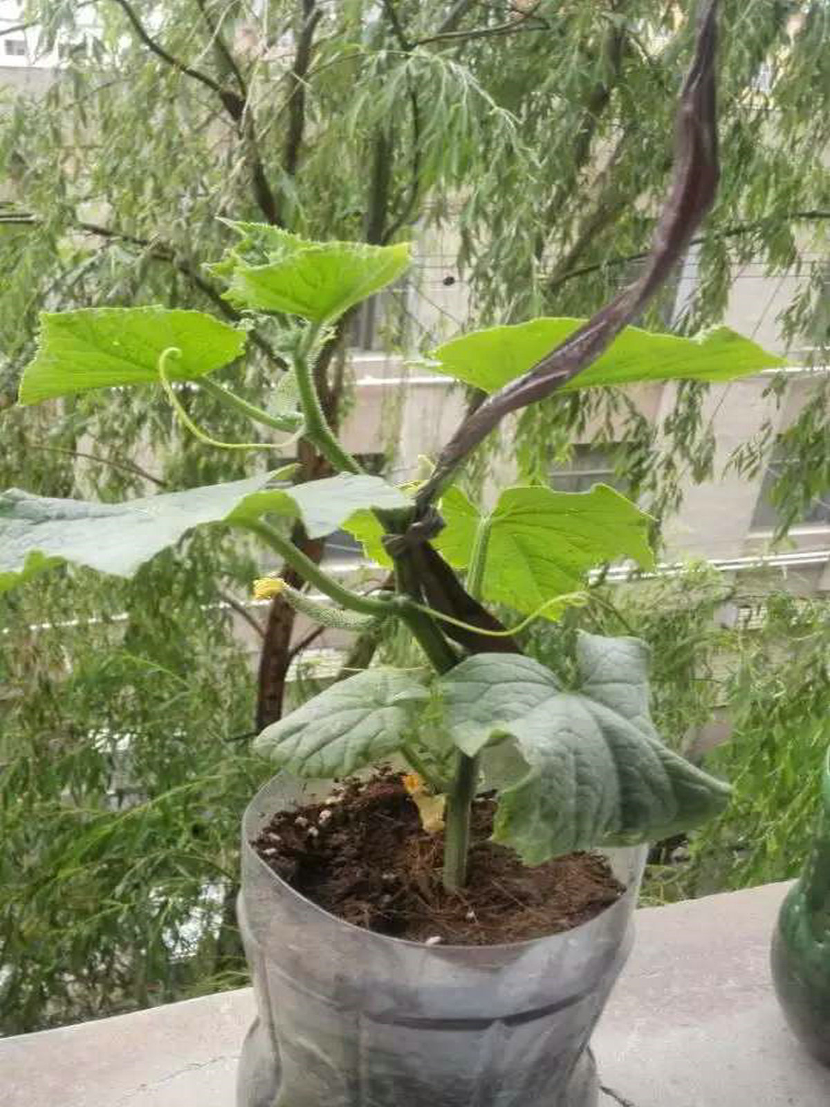 前两周,爸爸在家中阳台的花盆中种下了一株黄瓜苗。于是,我每天都去观察它,把它都记录了下来。
