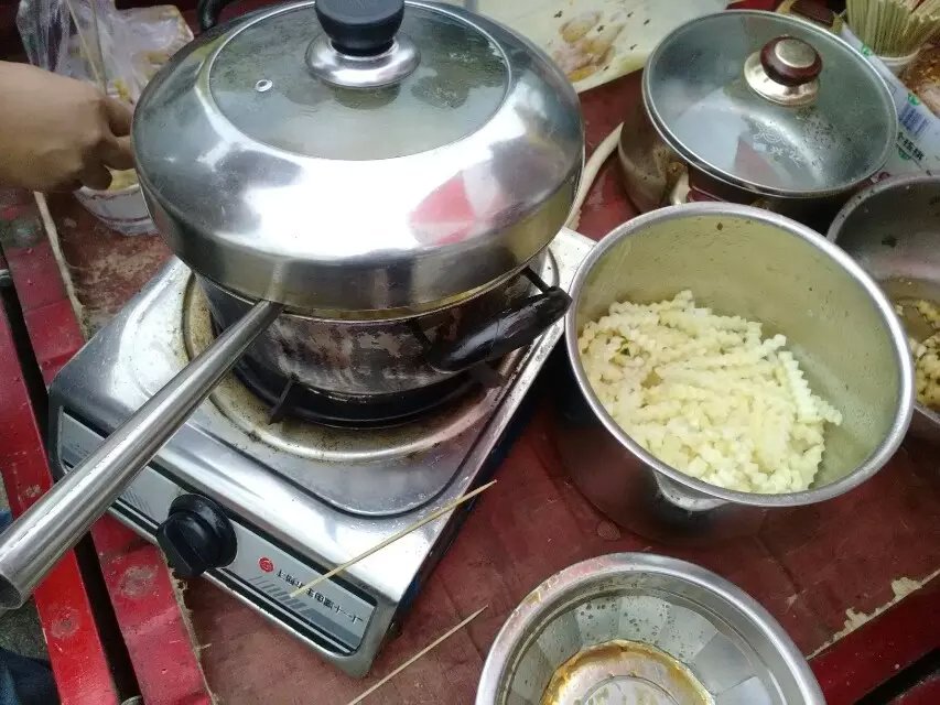 狼牙土豆在我们四川很常见,普及程度和酸辣粉差不多,最常见的摊位绝对是在学校门口,上学的时候最爱的就是去校门口买一份来吃,香味辣味让人垂涎欲滴。