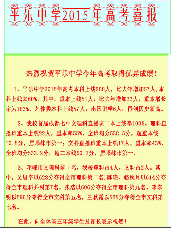 九月,是收获的季节,上届的应届毕业生考得甚好,再创新高,为他们自己,为老师,更为我们平中,平中人赢得了好脸面。