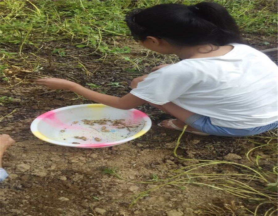 但刚开始,我就遇上了拦路虎:我扯起来的花生苗上落花生少得可怜。于是,我只有用手把土刨开,取出花生(这才是真正的刨落花生)。慢慢的,我的指甲盖里全部都是泥土,好痛!时间一分一秒的过去了,我的干劲儿也一点一滴的减少了,看着没有尽头的花生地,我彻底绝望了。