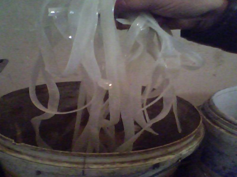 抓一把透明粉放在锅里面,等二三分钟后,就差不多了,放在碟子里面,加了许多的佐料,如:盐、花椒粉、芝麻、花生等等,总之闻起来真是那个香。