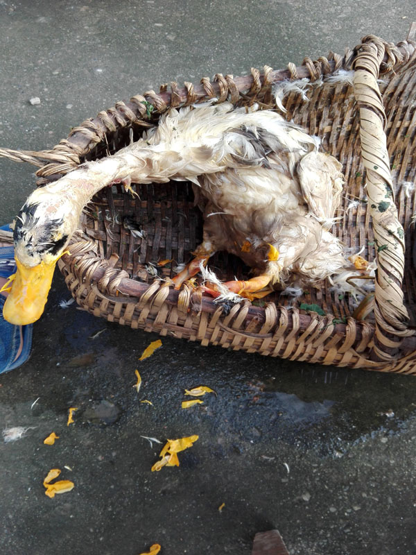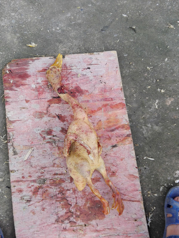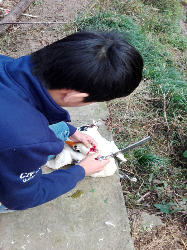 今天早上一起来外婆就叫我去杀只鸭子,因为家里要来客人,所以早饭一吃我就把鸭子拿出来准备杀了。