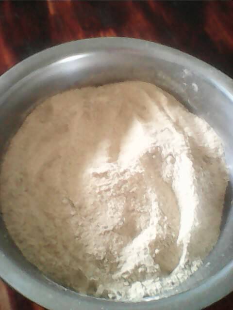 今天刚好在下雨,奶奶刚好得空了,姐姐也回来了,真是天公做美啊!因为今天既下雨我们又回来了,所为奶奶决定炒些米面粉来蒸排骨。可什么是米面粉呢?怎么做呢?就请听我细细道来。