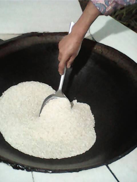 首先,在米缸里盛三碗米(当然也可以随你如意),再把锅烧热,再放入米。这时,你可千万不能烧大火,不然米很快就会变焦。