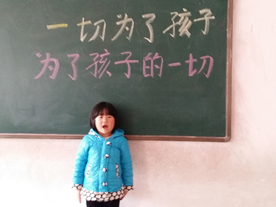 进入教室,最引人注目的是前黑板上精美的画,是由板报小组画的,语文老师在黑板上写得那两排字:“一切为了孩子,为了孩子的一切”的大字。