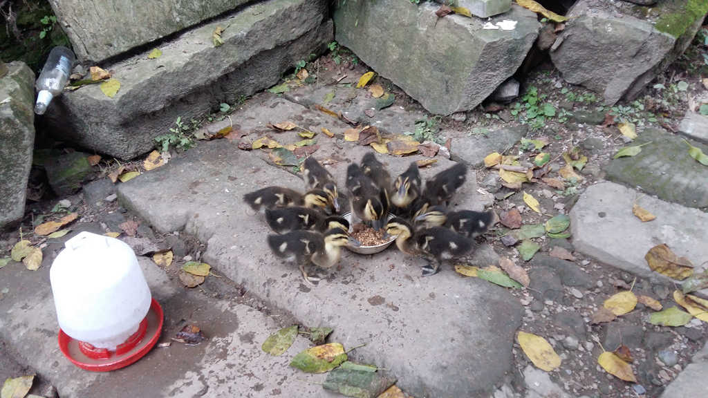 每到吃饭的时候,小鸭们就会围成一圈,狼吞虎咽地吃起来。它们吃得可是香喷喷的红薯饭,还边吃边喝水,那吃相可有趣了。