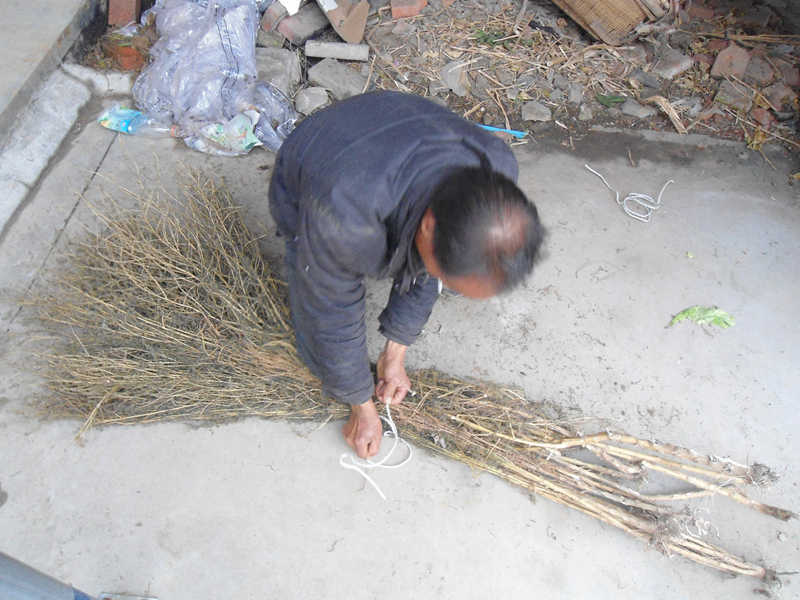 做扫帚是要把它从根部割断,有些长势好的扫帚秧一棵就够体系一把大扫帚了,小一点的,需要把许多放在一起,要排放整齐,然后用绳子捆扎起来,最后用重东西压着,压几天后就能用了。其实做扫帚很简单的。做小扫帚是更简学,只需将一些做大扫帚的下脚料,比如扫帚秧的小茎叶弄到一起,一捆扎就可以了。