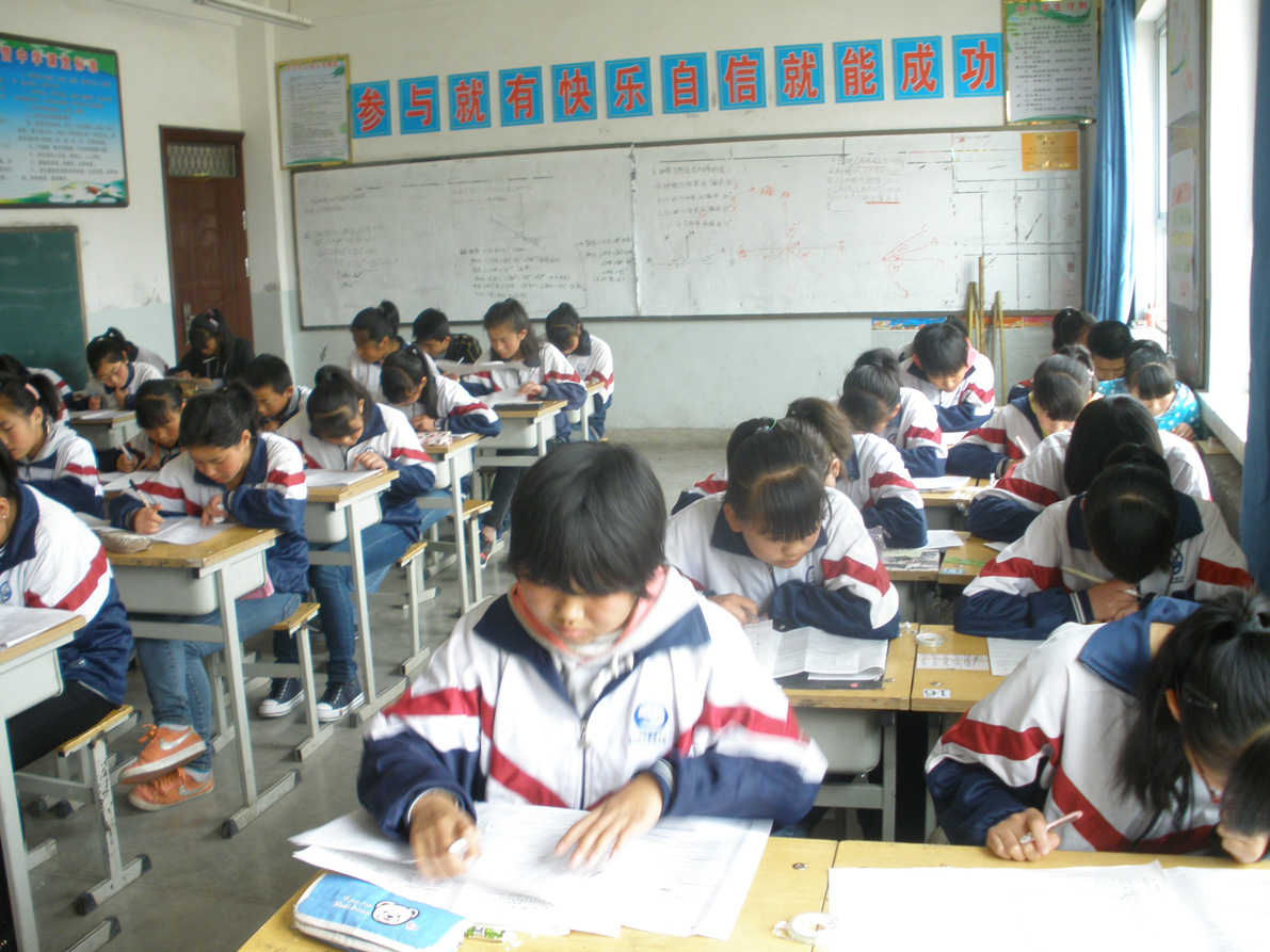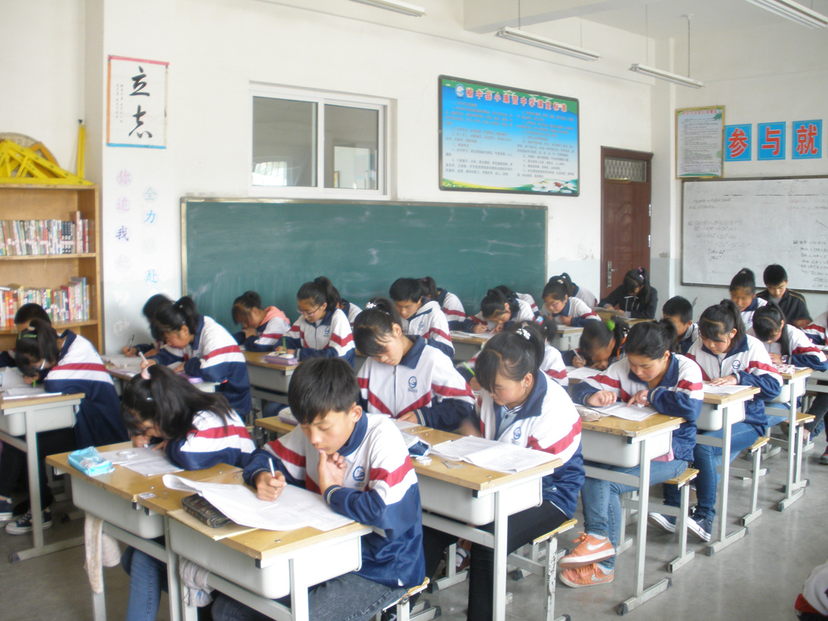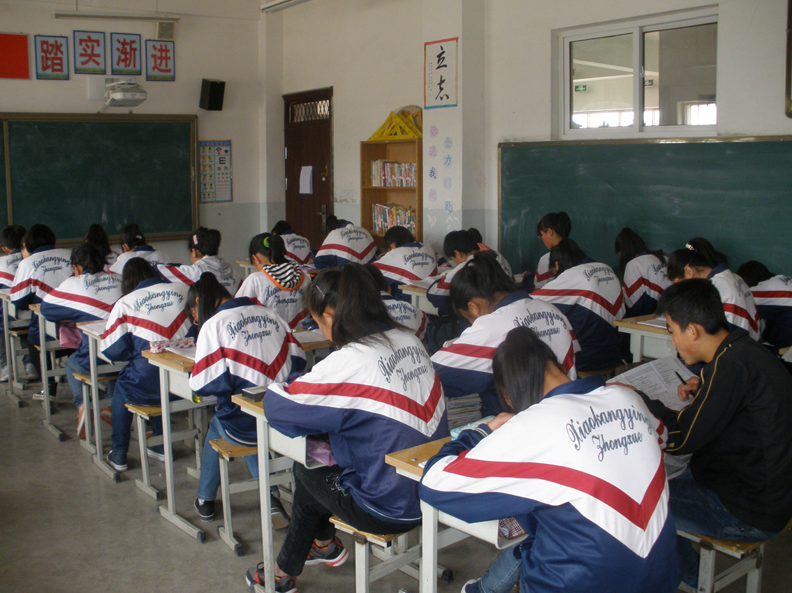 现在同学们是千姿百态呀!有的胸有成竹,脸上写满了自信,正在那儿笔走如飞,下笔如有神呢;有的则是一边写一边念念有词;有的则是“七窍通了六窍—一窍不通”,神情沮丧,无从下笔,不时皱眉咧嘴,像一只热锅上的蚂蚁坐立不安;有的则是蠢蠢欲动,想伺机偷香,可目光如炬的监考老师巡视着教室的每一个角落,吓得“鼠辈”不敢轻举妄动,真的是“一师当堂,万生莫看”呀!