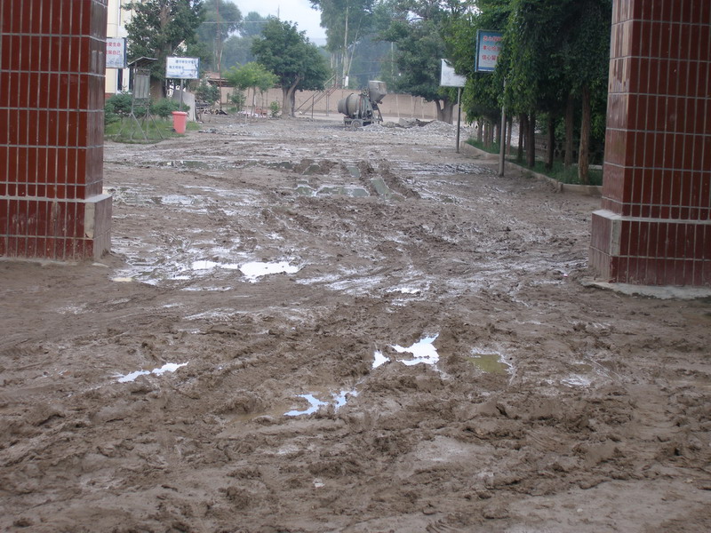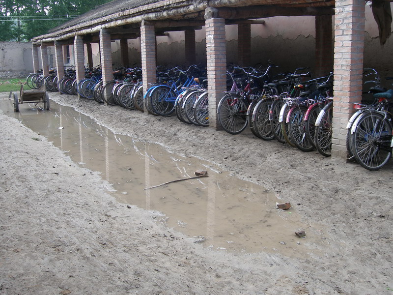 学生的宿舍,外面下大雨,里面下小雨。同学都搬到没有漏雨的房子了。
