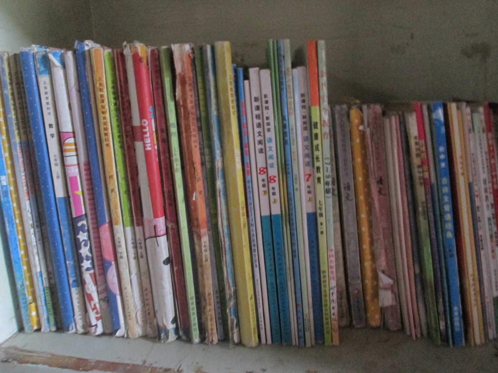 书柜对于一个农村孩子来说是买不起的,他们的书用完之后放在大箱子里,或是卖了。