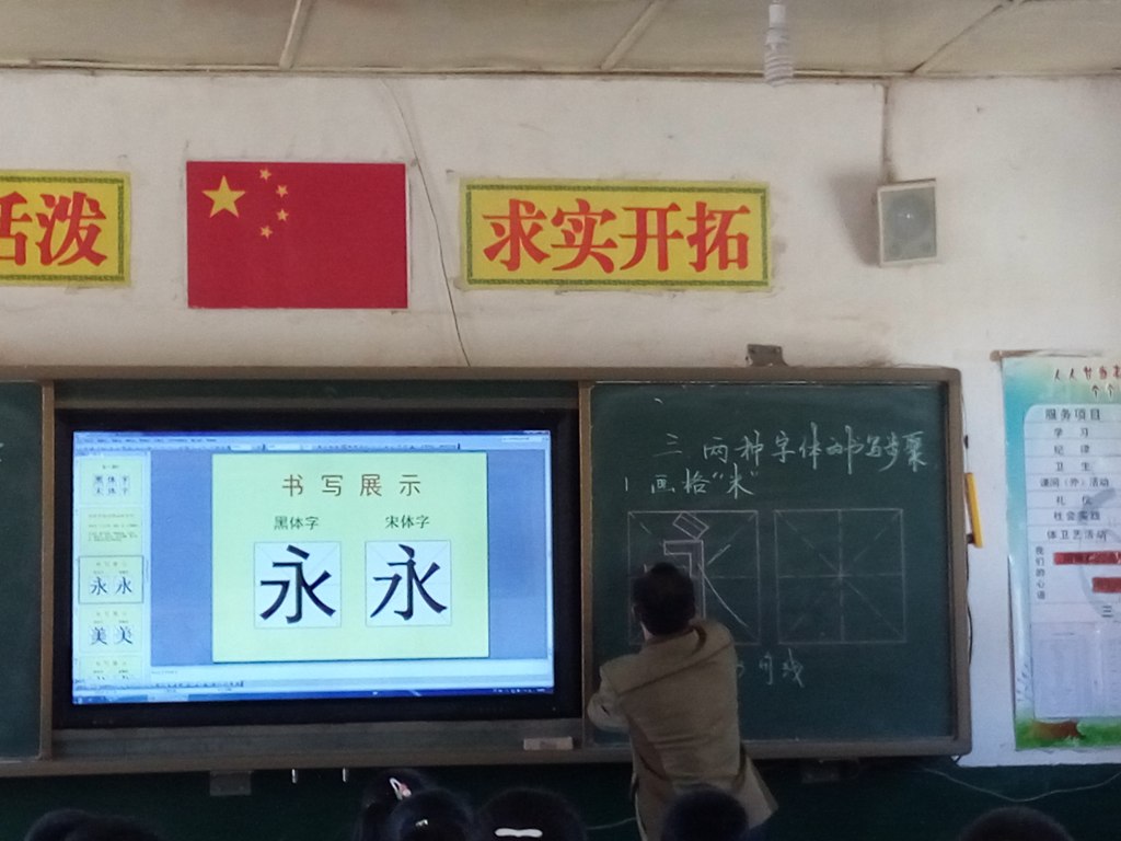 老师先示范黑体字的写法,接着老师示范了宋体字的写法,老师写得课真漂亮,我不由得心生敬佩之情。我们按老师的要求进行练习,我也学老师的样子来写,可是就是写不好,老师看见了,给我进行了指点,我顿时信心倍增,终于写出了一个还算不错的黑体“永”字。