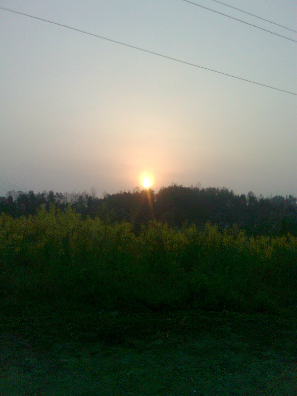 早上六点左右,天才微白,躲在山后面的朝阳却像个害羞的小姑娘一样才发出一缕微弱的白色光芒。过了一会儿,似乎是听到了大地对它的呼唤,又似乎是确定了人们的确是欢迎它的,才慢慢的从躲避的山峰后面走出来。随着这位害羞姑娘慢慢出现在世间万物面前,它的脸也渐渐变红了。而越发清亮的天空中,红日如纱,曼妙地轻拂 在天际。