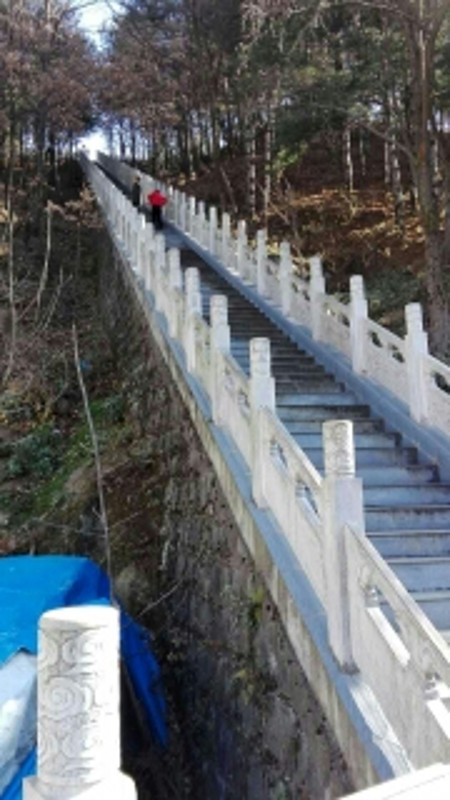 踏上了笔陡的石阶,抬头向上看,石阶好像从天上挂下来,让人发颤。我鼓足勇气向上爬去,石阶两旁种满了松柏,在寒冷的冬日里松柏更加苍翠。 在途中,我仔细观察了石阶两旁的栏板,栏板上雕刻着各种各样的画:有腊梅、青竹、兰花、菊花······腊梅上的小喜鹊正张着嘴巴,为死去的烈士唱赞歌。兰花高雅,亭亭玉立。