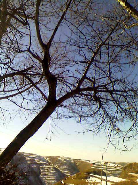 再看前面的山,经过一场大雪的滋润后,更显沧桑之美。远处的山重重叠叠,虽称不上叠翠流金,但还是透着一股苍凉、耀眼之美。远处的山就好像是一位位满腹墨水的诗人,在互相吟诵诗歌,交流诗歌心得。