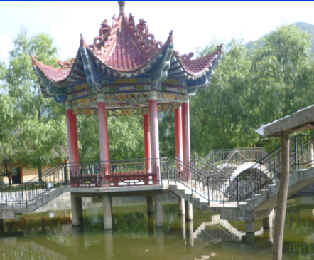 去年暑假,随着白色的大巴车,我和妈妈一同来到了美丽的秋菊山庄散步,愉悦愉悦心情。大巴车驶进了秋菊山庄的大门。首先映入眼帘的非亭台莫属了。亭台在清波荡漾的湖水中央,亭台是由八根棱柱支撑的,棱柱之间都连有石头,石头也可以供人们坐下乘凉、歇脚。这个亭台的大体外观看起来都是红色,它的亭尖是一个庑殿顶(四阿顶)。 连接走向亭台的石阶,在湖水的四个方向,走在石阶上,有一种说不出的没好感。湖水中的鱼,写龟,水草个个都充满了生机。鱼游来游去,时不时地跳出水面,以示友好。无一处不充满着古代的艺术建筑气息。