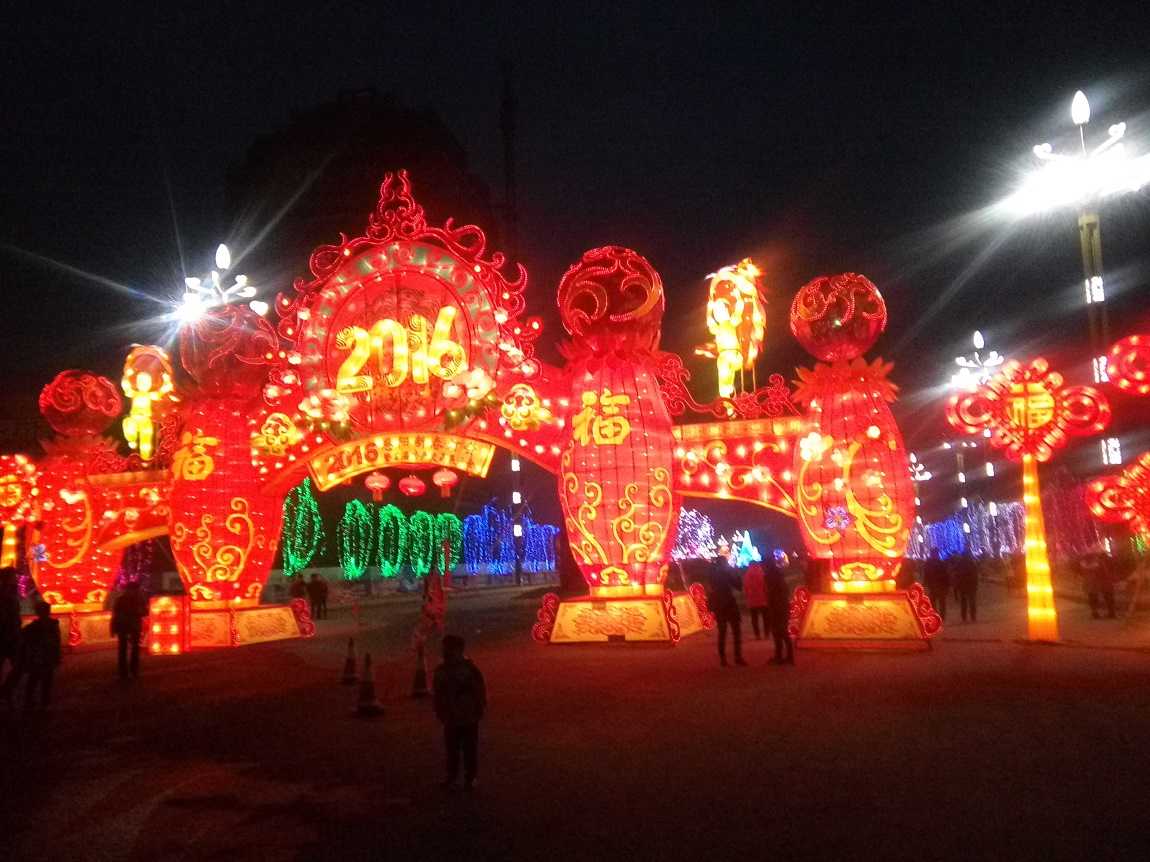 今年的春节和往年一样热闹非凡,优美的歌声,亲朋的祝福,多彩的烟花……无不散发着节日的欢乐与祥和。最让我难忘的是那绚丽夺目的灯会世界。一走近,便是一个用灯制作的红色大门,闪闪发光。大门正上方是用灯组成的皇冠似的门楣,中间还镶嵌着2016的字样。大门两边的门框是像极了大花瓶的模样,上面也写有福字,在往两边也是两个较小的一点的相同的“花瓶”。粗看,还有几分像大孔连着小孔的石拱桥呢。