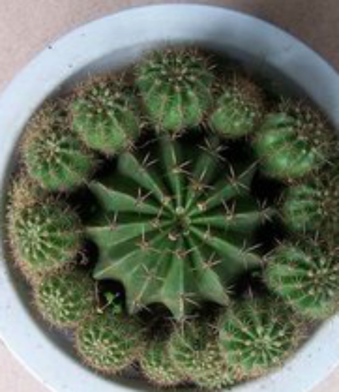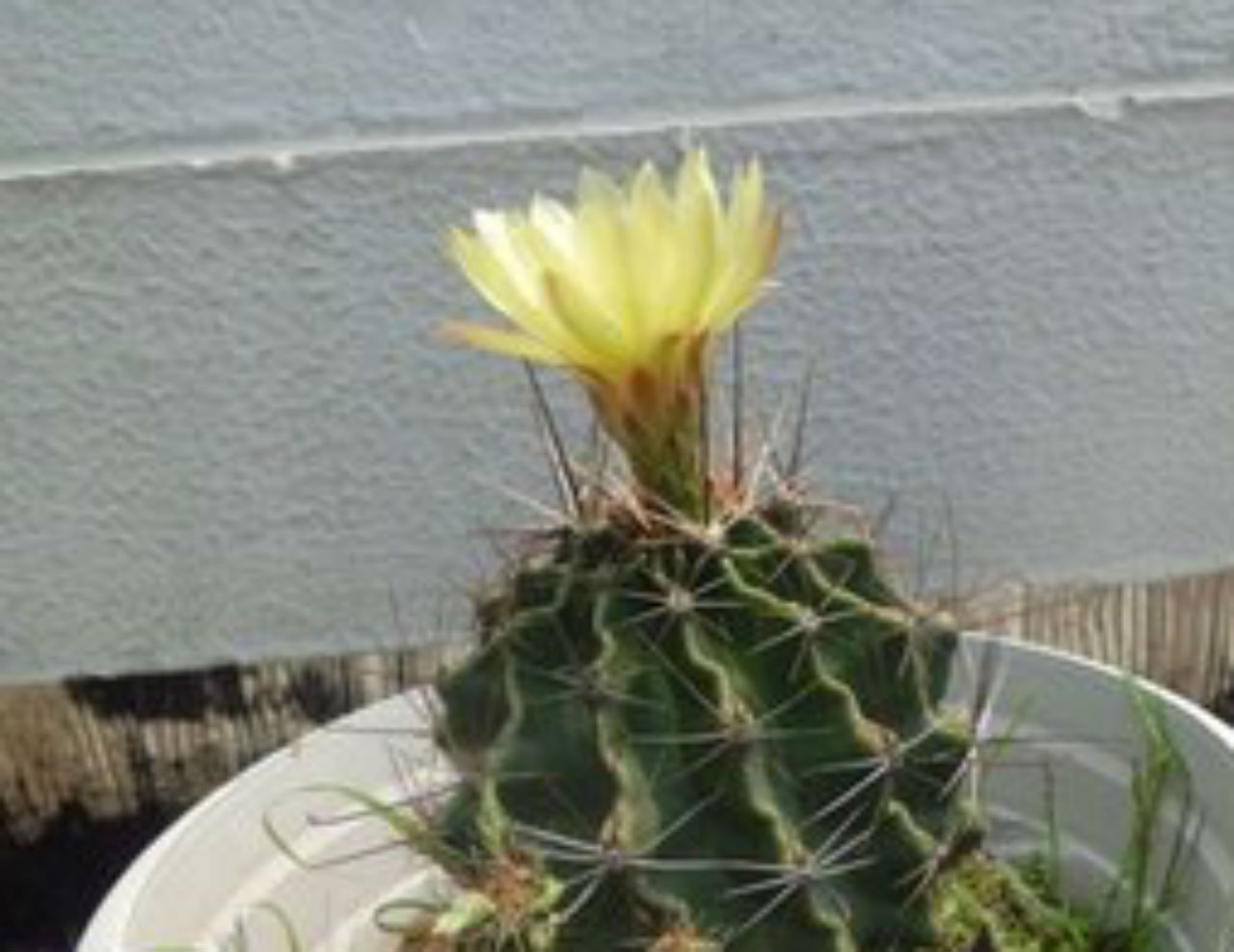 在一年中,仙人球只能开一两次花,所以每次开花时我都会坐在阳台边上,静静的看着它在微风中随意摆动。它那美丽的舞姿,闻着它发出的阵阵青香,使人神青气爽。