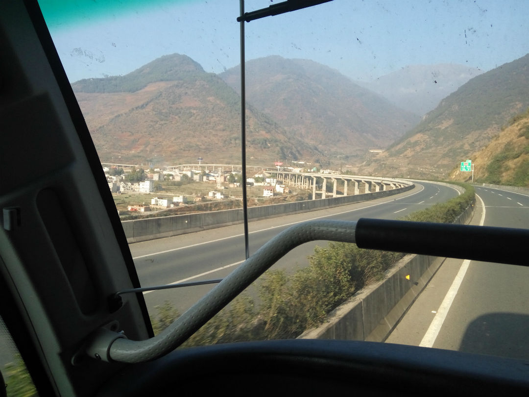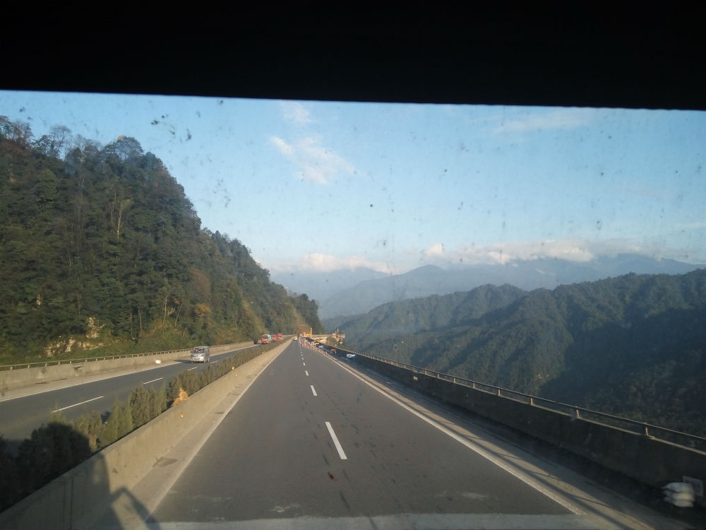 透过车窗,前面可以看到雄伟壮观的各种桥,当汽车行驶在桥上,俯瞰山谷,令人不寒而栗,深邃的峡谷犹如一个神秘的无敌洞,让人神往,又让人生畏。