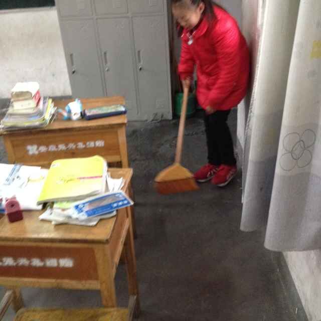 放学了,我先把凳子搬起来放在桌子上,然后拿洒水壶给地面洒水,等水散发了,我拿起扫帚,认真的把教室的每个角落都扫干净了。