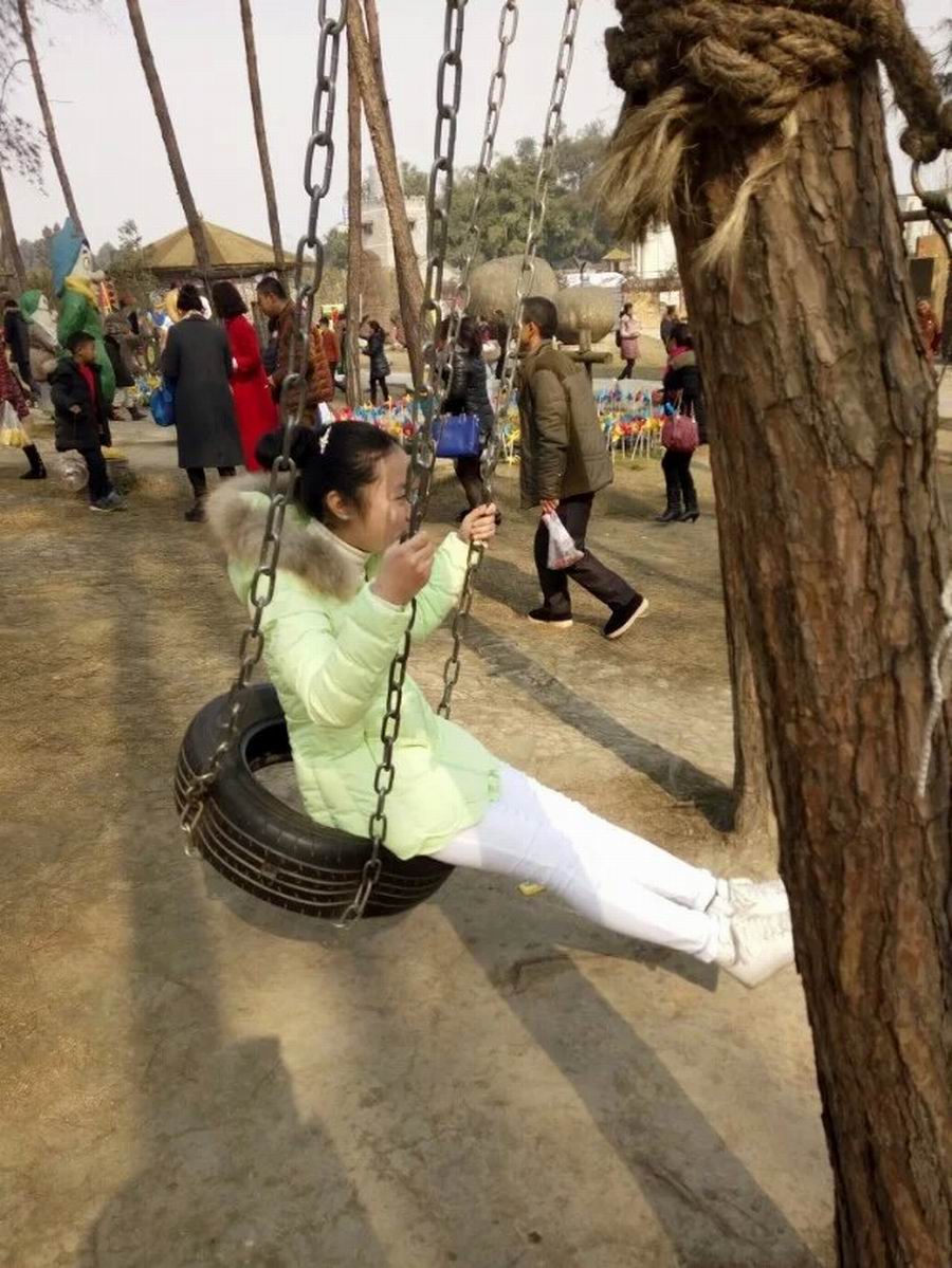 紧接着,我和姐姐看到了一个用轮胎做的秋千,我便和姐姐迫不及待的跑了过去,荡了起来。我们一起荡过来荡过去,我还喝着奶茶,这种感觉真好!我们开心极了!