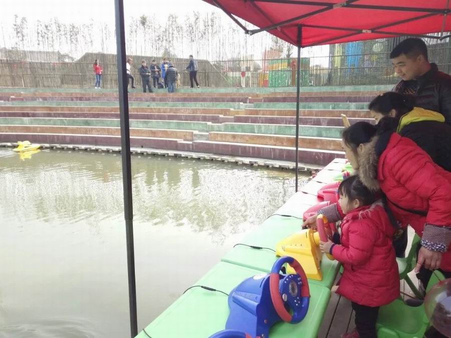 又过了一会儿,我和姐姐荡完了秋千,就去找妹妹和大姨了。妹妹正在开着船,她的船是黄色的。船在妹妹的控制下左摆右摆,一会儿向前,一会儿又退后。真有意思啊!