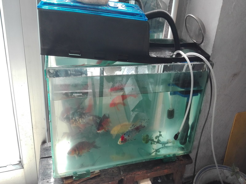 等一切准备就绪之后,发现没有供氧泵,抽水泵,于是又急忙从网上定了一台,当时就没有多思考,应该等器材回来在买鱼,结果器材要一个星期才能到,鱼已经死了两条,这就不太好。毕竟也是第一次养鱼,几乎是零经验的,只是耳边依稀浮起进来的顾客说鱼不好养啊。不过没关系,万事开头难嘛。