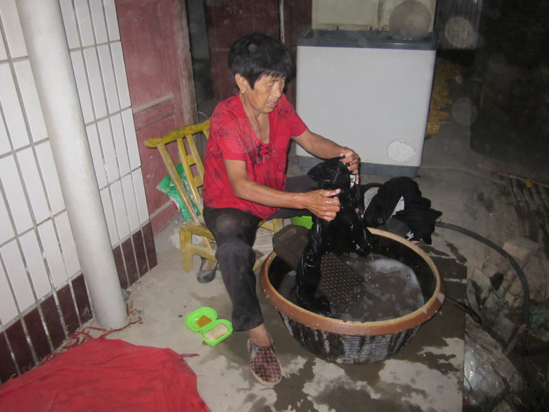 首先,奶奶往洗衣机中倒了水,然后,将衣服分类,并取来衣架,在洗衣机中放入洗衣粉,放着衣物在里面,又拿盆盛了水,把一些难洗的放在里面,等一会儿,就用手尽力搓了起来,并搓一会儿放些洗衣粉,不一会儿,难以处理的衣物就干净的一尘不染……