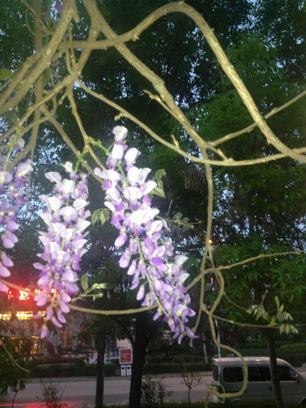 有一天,我们去了张载广场还拍了几张照片,第一张是花,不知道叫什么名字,不过花的样子有点像杨槐花,但是花是紫色的,非常漂亮,一棵树上长着是一串一串的,很特别,很特殊,看起来还有点像鲜花一般,不过她叫什么名字我真不知道呀!