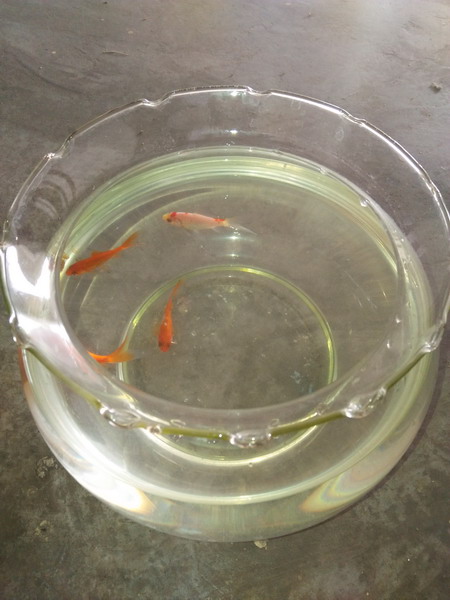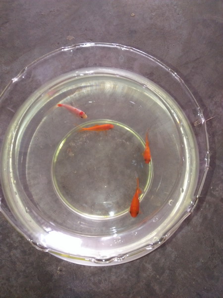 前几天,妈妈给我买了几条小金鱼,有三条是金的,一条是白色的。今天我便观察起它们来了。