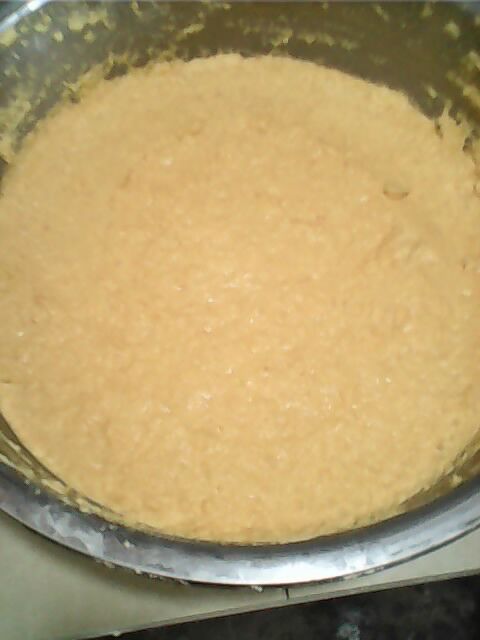 先将锅里的水烧开,再将和有糖的玉米面用小勺子一勺一勺地放了沸腾的水里,然后再在水里撒些糖,这样才会更甜。