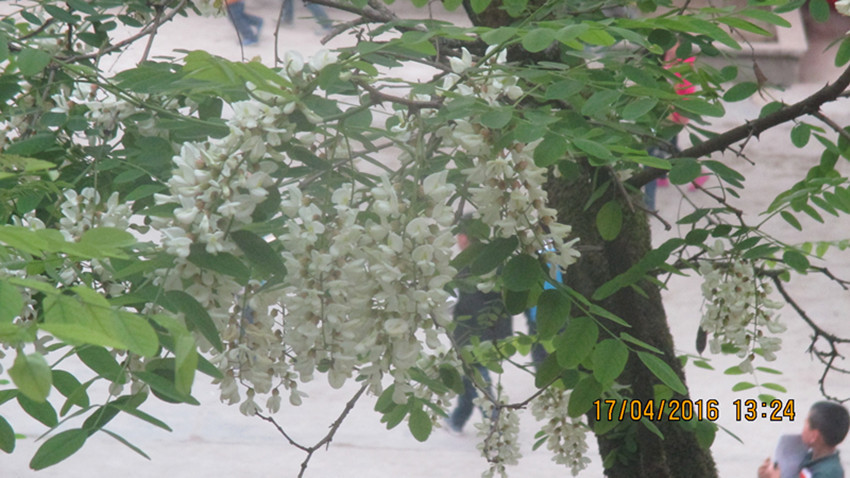 我所在的校园位于四川盆地中的成都平原,此地地势平坦气候温和水源丰富,因此我们这里有各种各类形态各一的树木。然而,在春天和夏天两个季节交替的时间段中,我还是比较喜欢杨槐花。据我了解我们学校这个地方的杨槐花为最多,小学操场上中的一排杨槐树,它们已经长得非常的强壮,现在也正是他们最美的季节了。