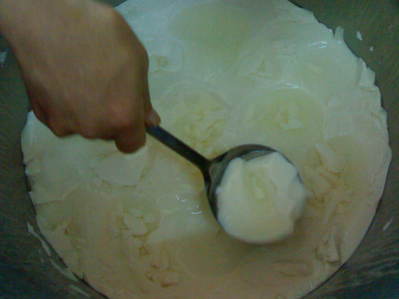 这种的豆腐脑就基本成型了,成型以后不像最开始那么看来滑滑嫩嫩的,但还是那么的好看,但如果我们在吃的时候,适当的加一些佐料在里面,那效果就是另一番滋味了。