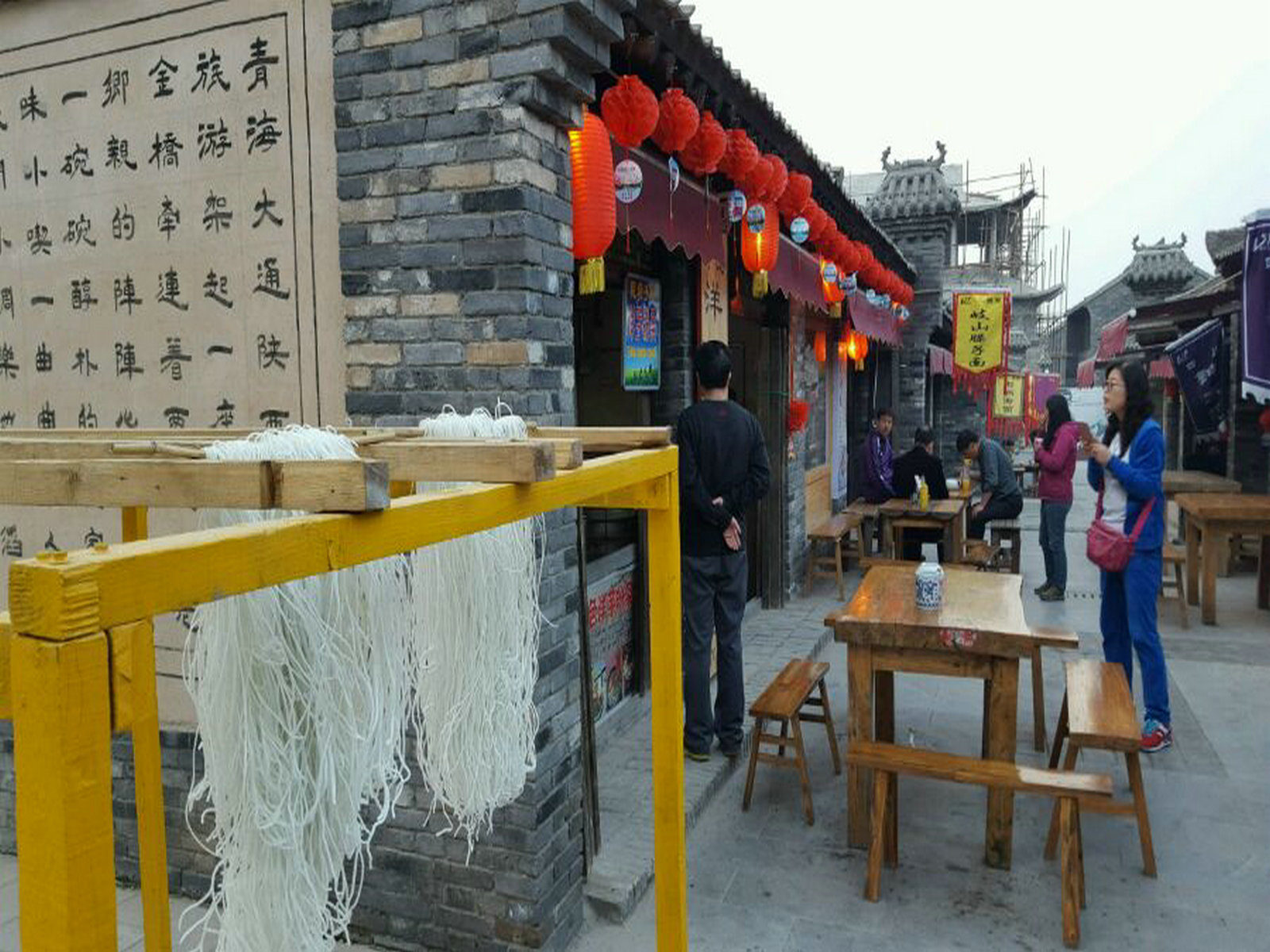 今天妈妈带我去汤峪玩,爸爸要工作所以来不了,我和妈妈去玩,妈妈带我来到了闫家堡,我看见那里很像古城,那里的房子是新盖的,我看见那里的桌子和我们这里不一样,那个桌子是正方形的,而我们这里的桌子是长方形的。