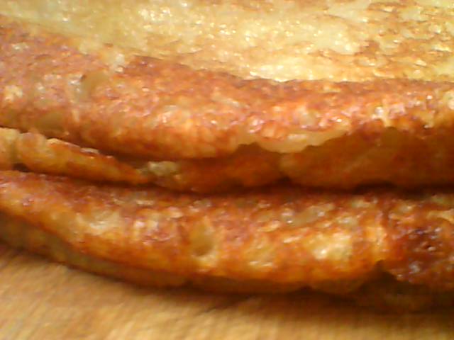 接下来,就要烙饼了。先要把锅烧热,倒少许油。等油过了以后。拿一个大一点的铁勺,挖一勺洋芋泥,放到锅里。用铁勺把他铺开,铺平。估摸着熟了以后,再翻一下。来来回回翻两次后,就可以拿出来了。最后,把大饼切成条状,放上一些醋,就可以品尝美味了。