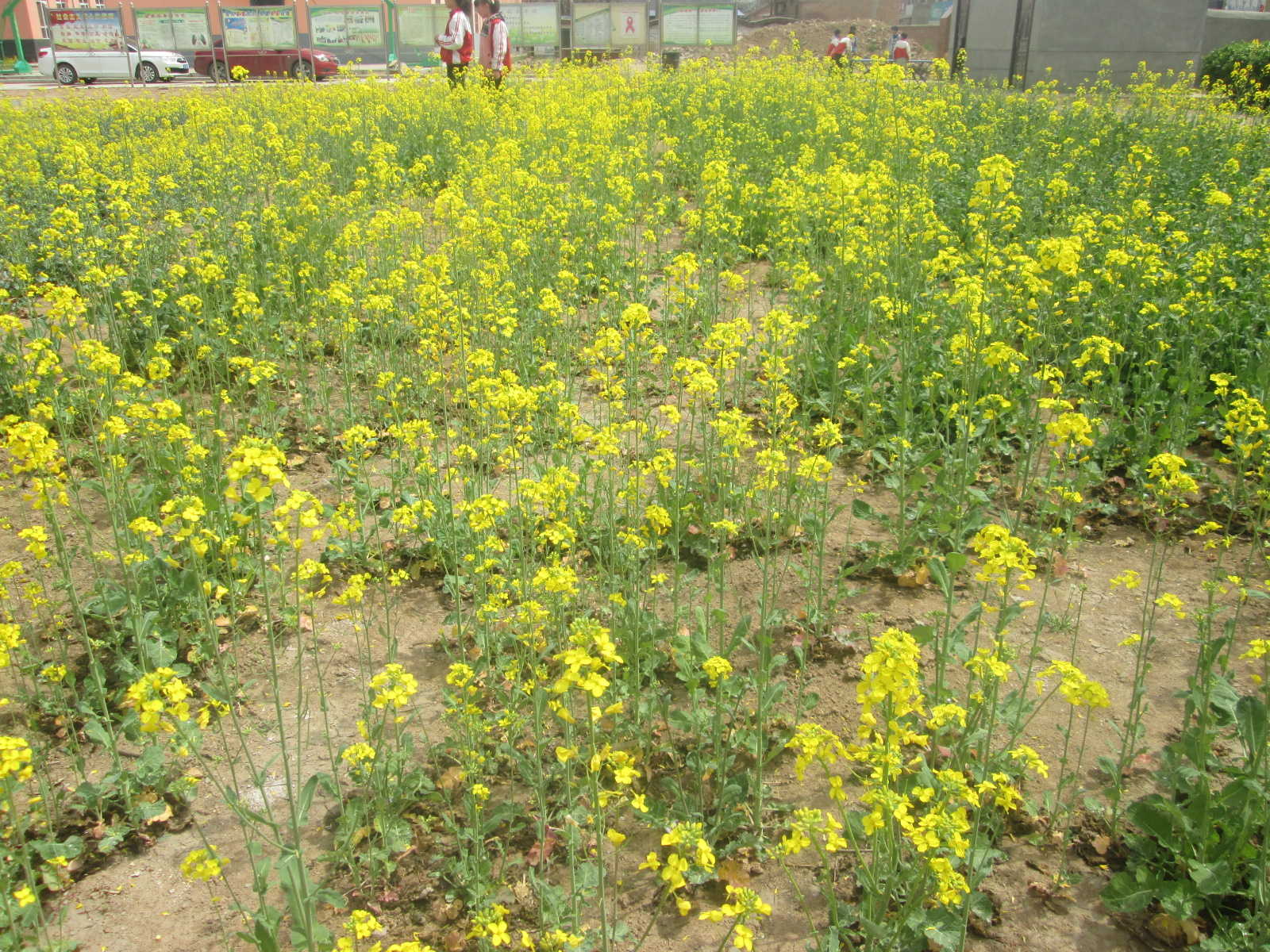 这片油菜花园,位于学校的大门前,从远处看它们密密麻麻的生长着,看上去非常漂亮,这现在已经成了我们学校的,一道美丽的风景线。