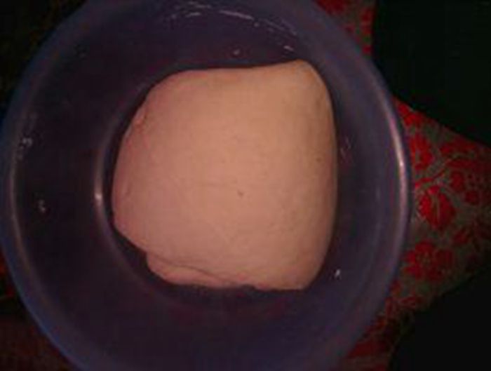 今天妈妈做美味的油饼。妈妈首先在一个大盆中,放入了盐小苏打和发酵粉。再徐徐加入冷水用手和面。和好的面即柔软又不沾盆壁。